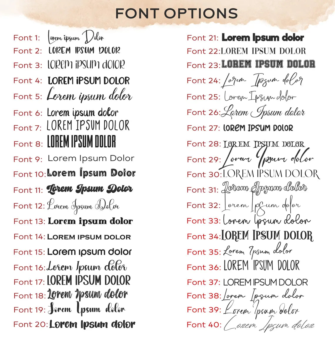 5. You can choose between several fonts (Please check my pictures)! Enter the desired font here based on the fonts picture! If you dont enter the font we will product with the Font 24, see on pictures!