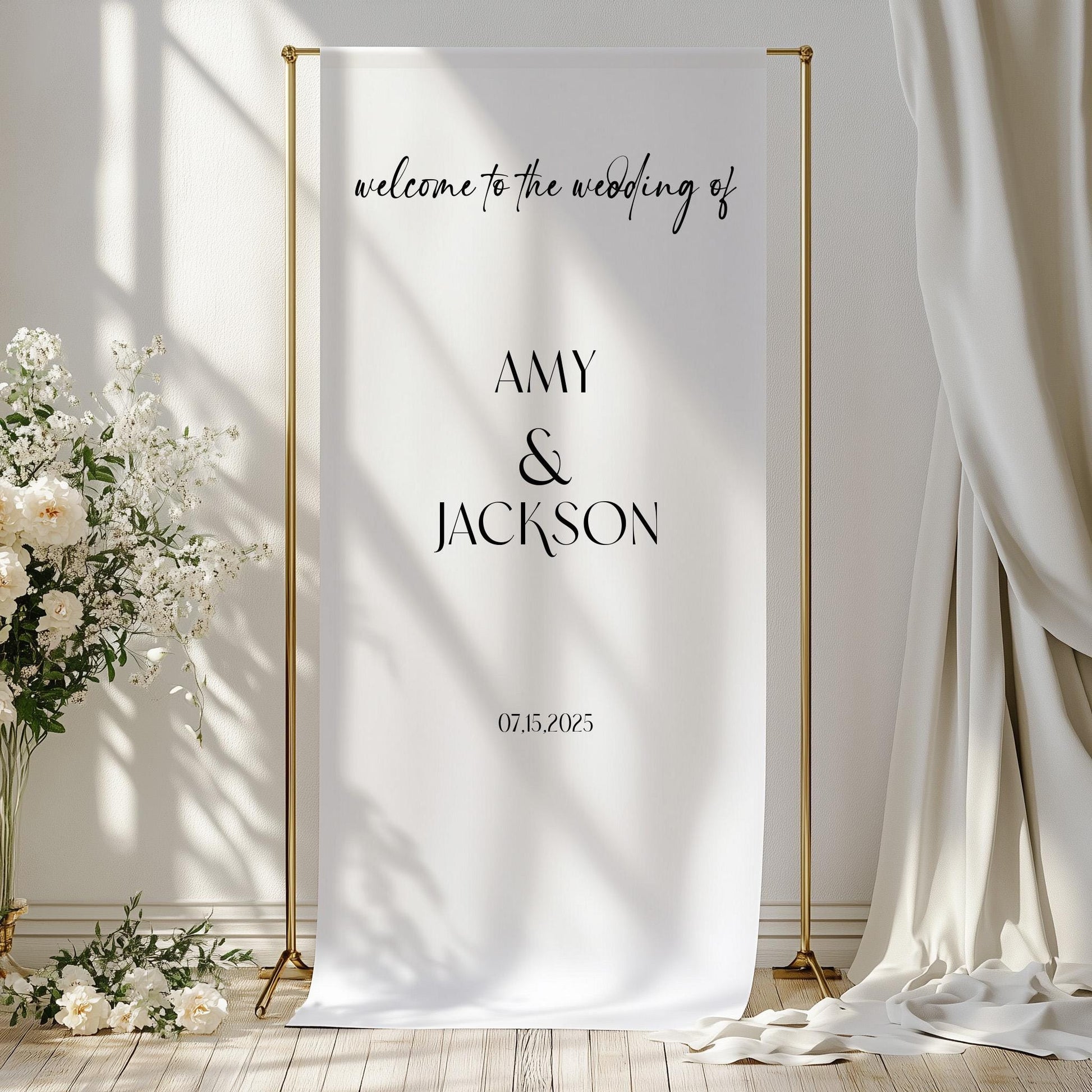 This minimal, elegant wedding banner is the perfect touch to elevate your big day. Fully customizable with names, dates, and your unique message, it doubles as a beautiful keepsake to cherish long after the celebration.